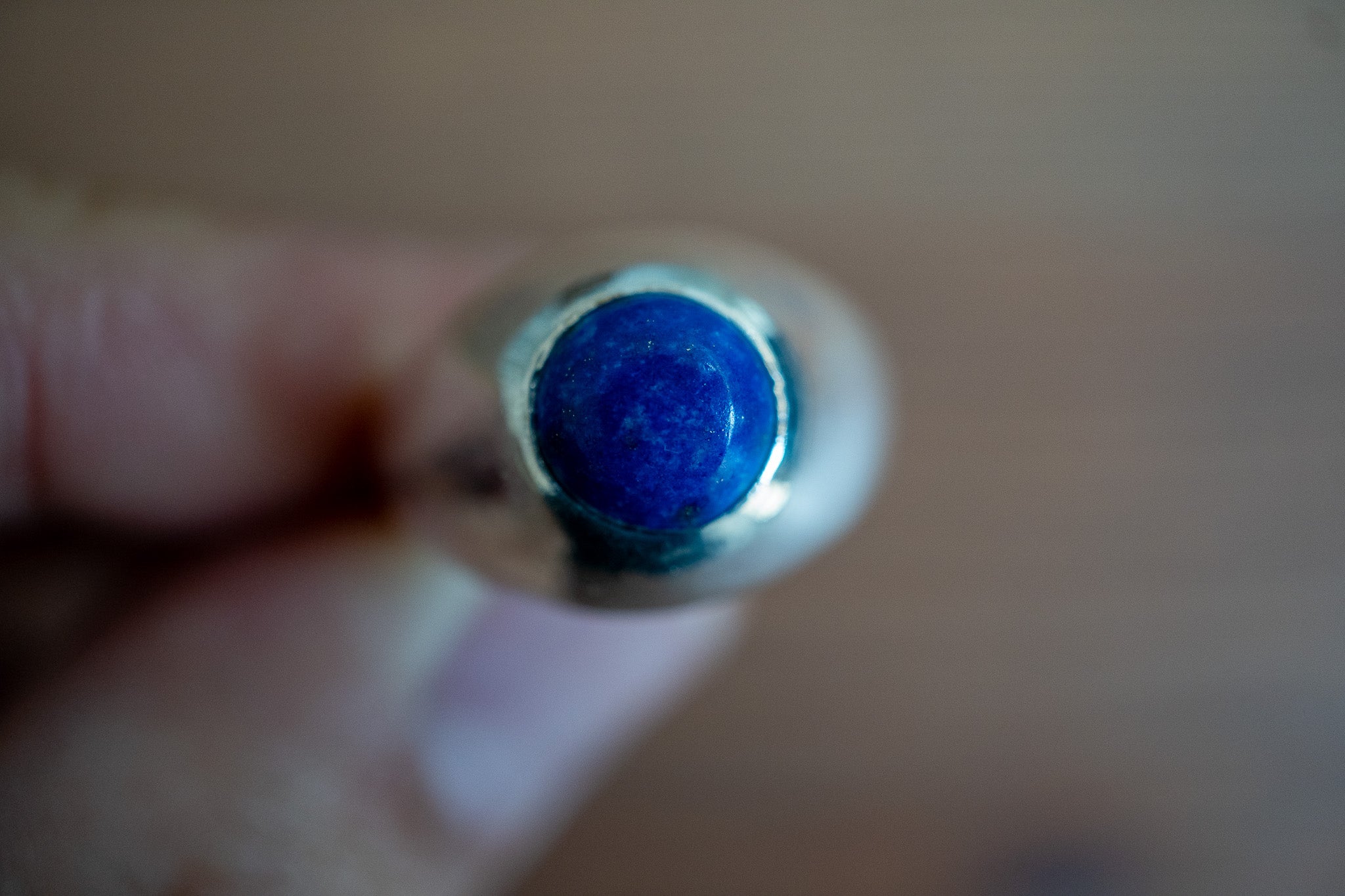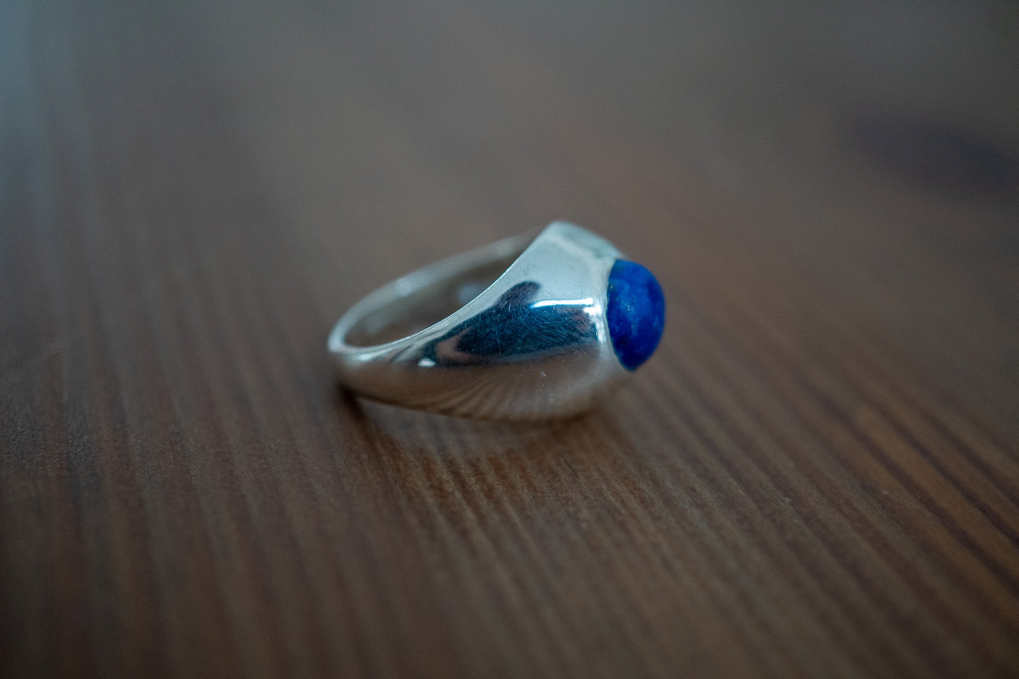 Chevalière en argent 925 au style intemporel, sertie d’un lapis lazuli naturel. Sa monture raffinée met en valeur le bleu intense et profond de la pierre, ponctué de délicates paillettes dorées, tout en conservant une allure sobre et distinguée. Un bijou de caractère, authentique et élégant, à porter au quotidien comme lors d’occasions spéciales.