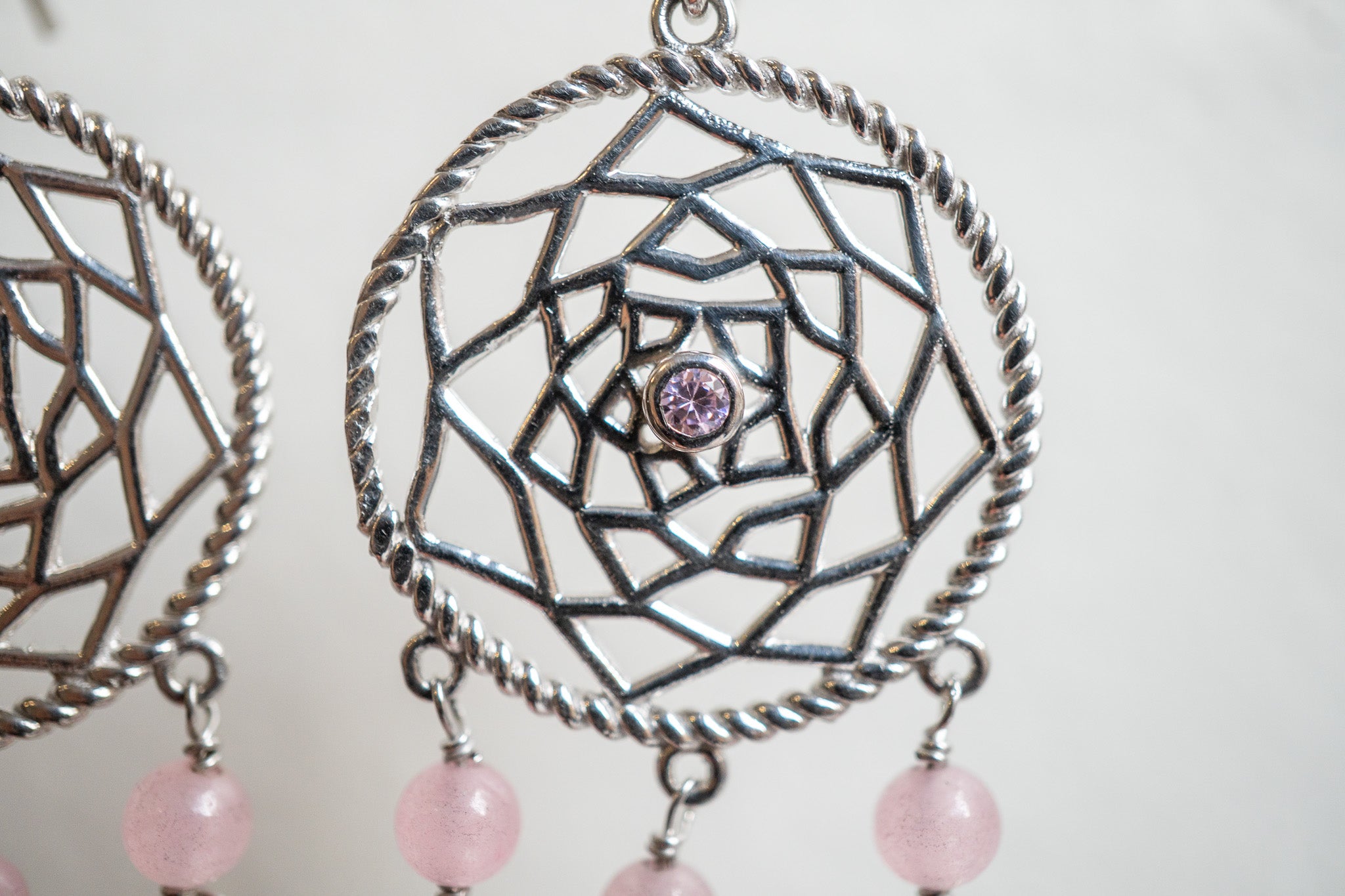 Boucles d’oreilles attrape-rêves avec Agate et argent 925