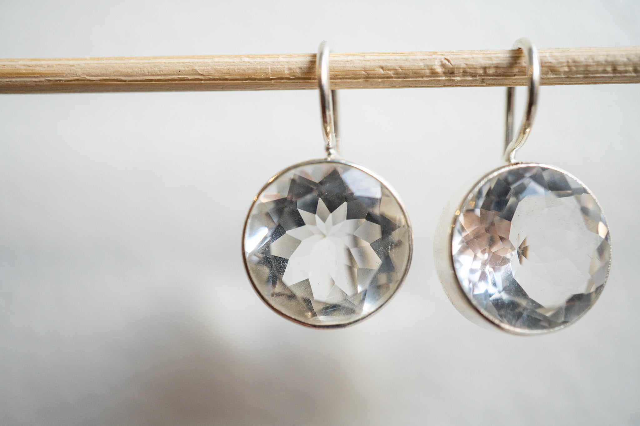 Boucles d’oreilles en argent 925 ornées de cristal de roche naturel. Raffinées et lumineuses, elles captent la lumière avec délicatesse et apportent une touche d’élégance à toutes vos tenues. Le cristal de roche, symbole de clarté et d’harmonie, se marie parfaitement avec l’éclat discret de l’argent pour un style intemporel.