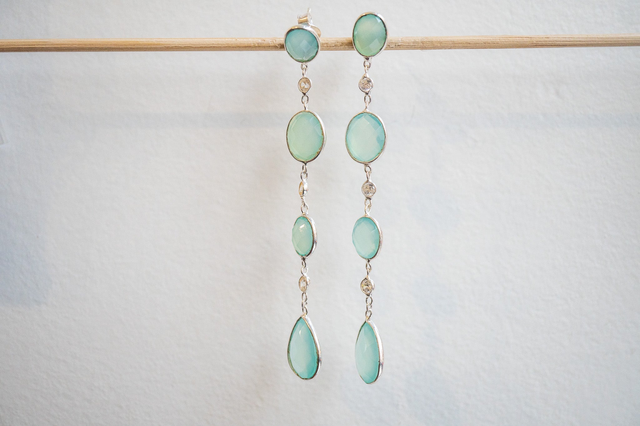 Boucles d'oreilles en agate et oxyde de zirconium et argent 925