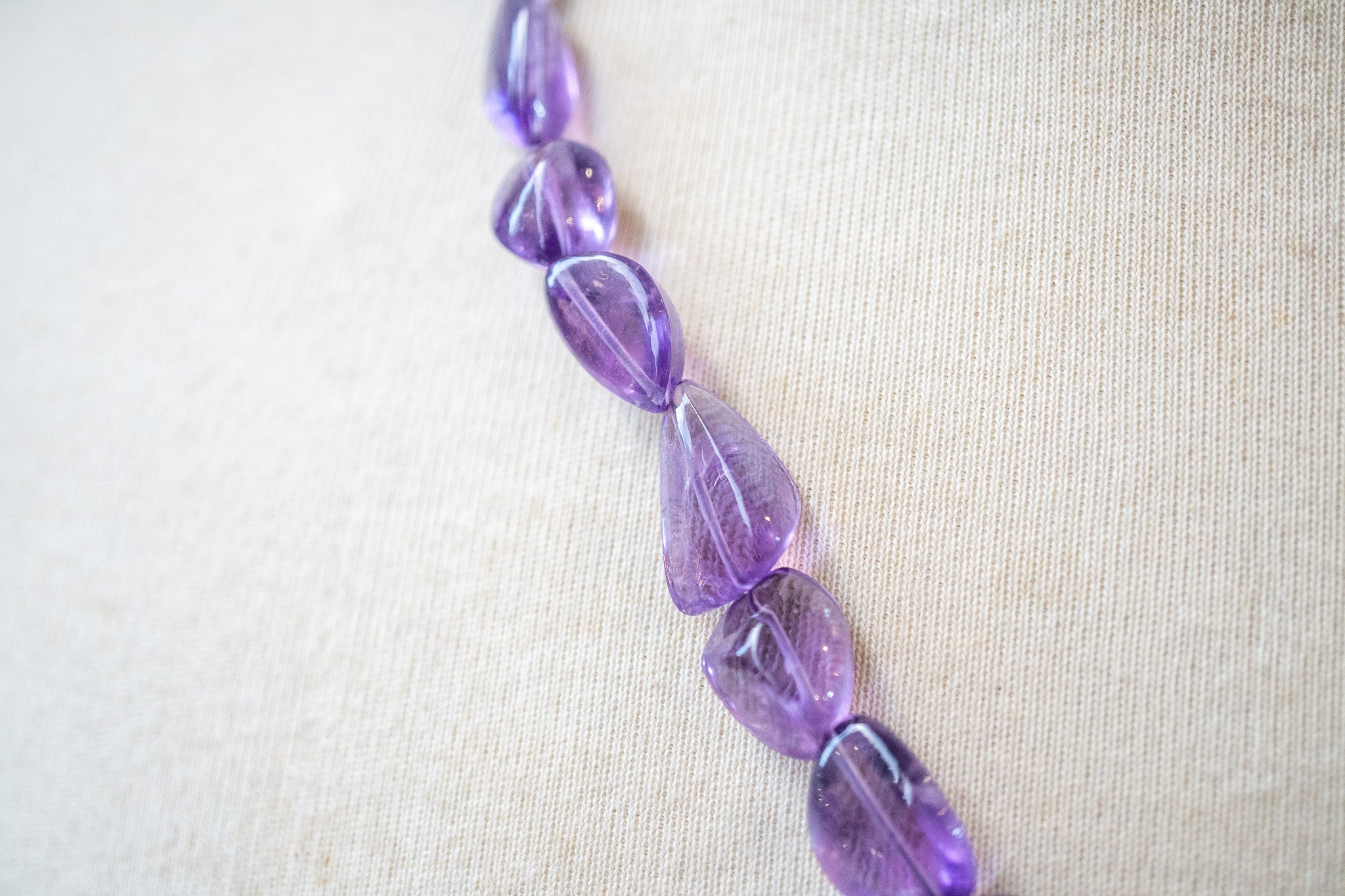 Ce collier élégant met en valeur la beauté des améthystes naturelles de la Zambie, réputées pour leur couleur violette intense et lumineuse. Chaque pierre est soigneusement sélectionnée pour sa pureté et son éclat, puis montée à la main sur une base en argent 925. Un bijou raffiné qui allie authenticité et élégance, parfait pour sublimer vos tenues du quotidien comme vos soirées.