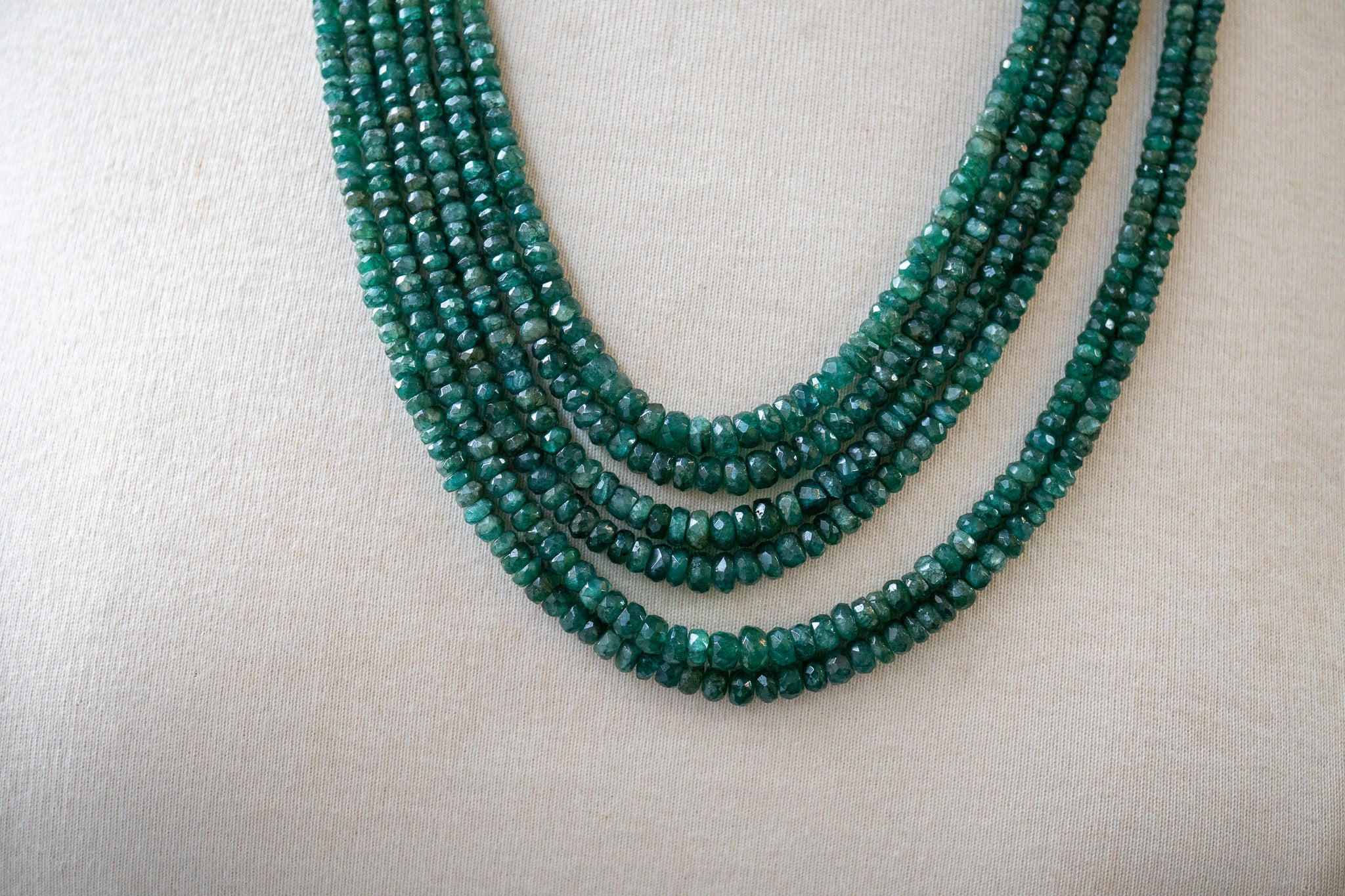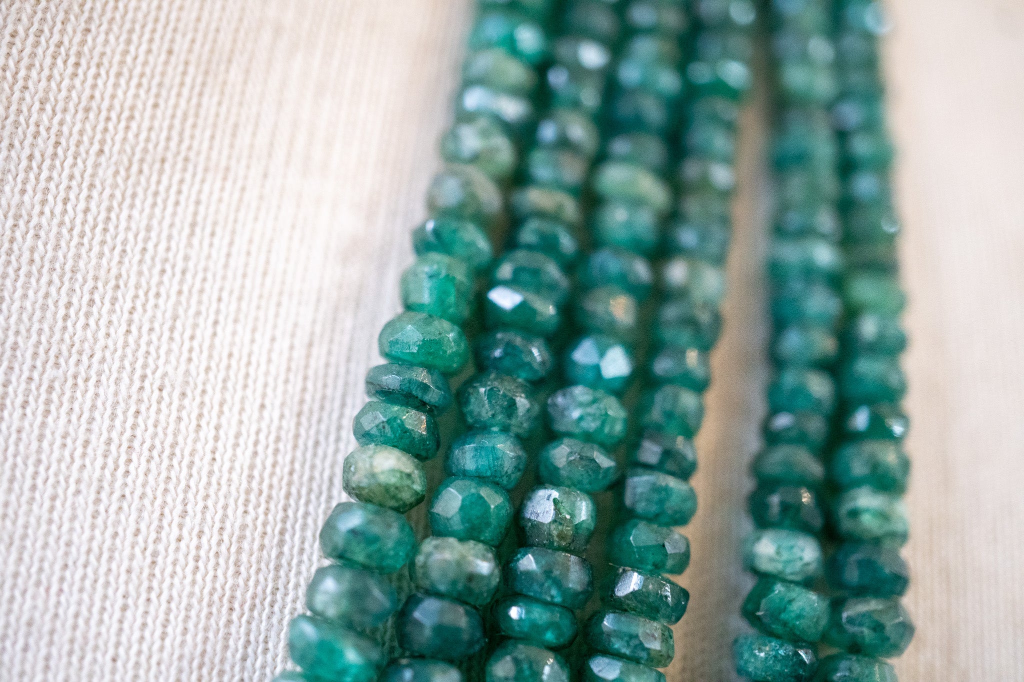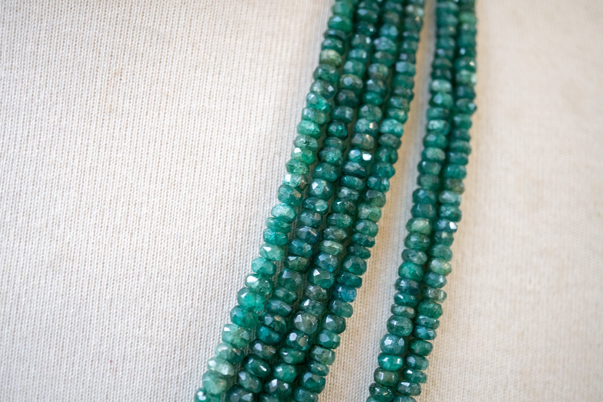 Ce collier en émeraude naturelle, composé de multiples rangs de perles finement facettées, révèle la profondeur envoûtante du vert de cette pierre précieuse. Chaque perle capte la lumière, offrant un éclat vibrant et raffiné. Le fermoir tissé à la main souligne le savoir-faire artisanal et ajoute une touche d’originalité. Symbole de renouveau et d’harmonie, l’émeraude apporte distinction et sérénité à celle qui la porte.