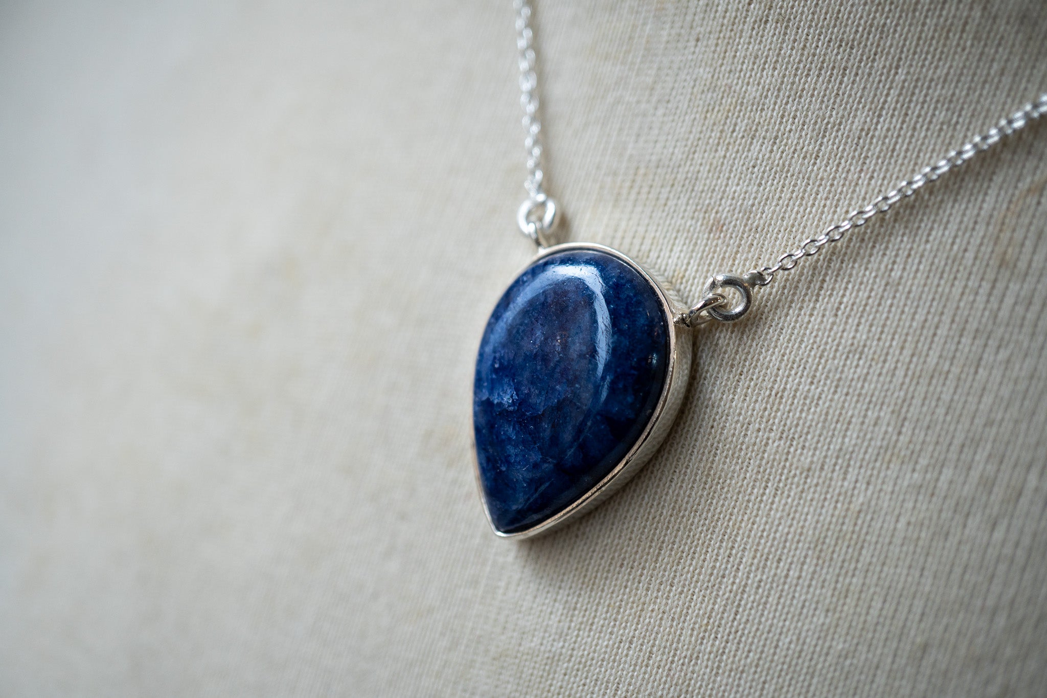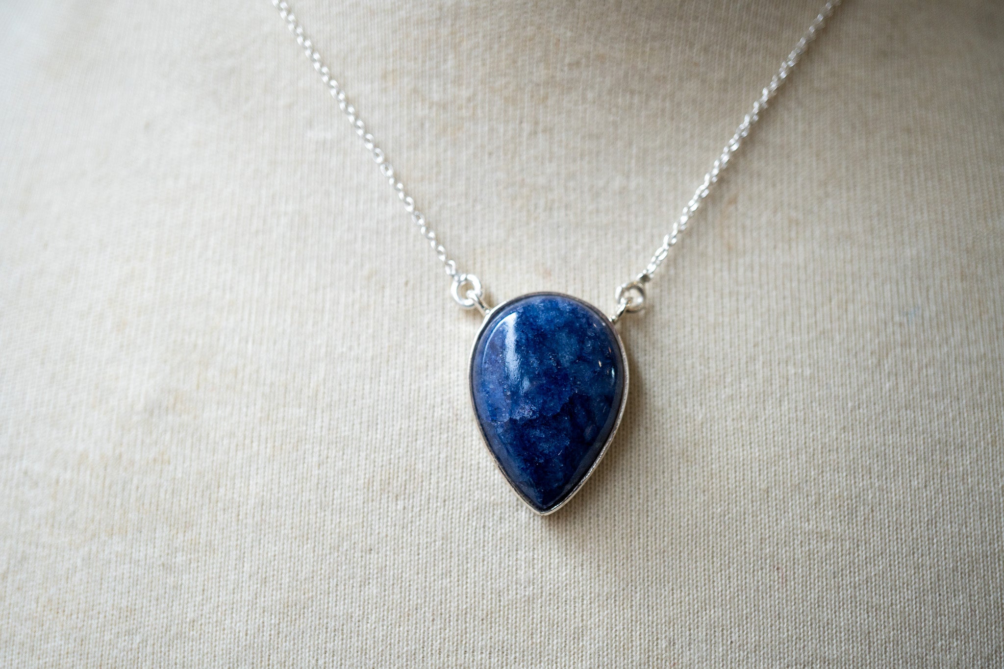 Collier en argent 925 orné d’un saphir naturel bleu profond. La pierre est soigneusement taillée pour capter la lumière et révéler toute son intensité. Sa chaîne fine et élégante offre un tombé délicat sur le décolleté, idéal aussi bien pour un style quotidien raffiné que pour une occasion habillée.