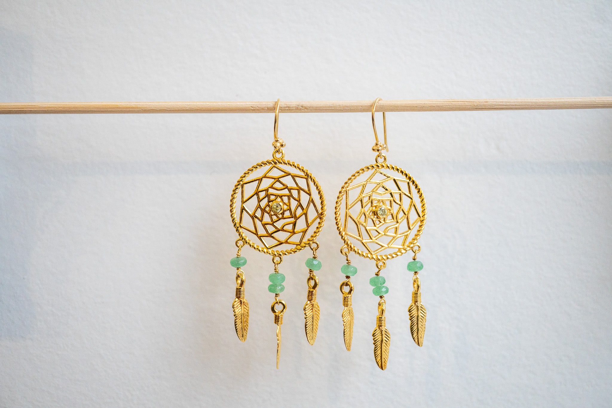 Boucles d’oreilles attrape-rêves avec Prasiolite et Chrysoprase