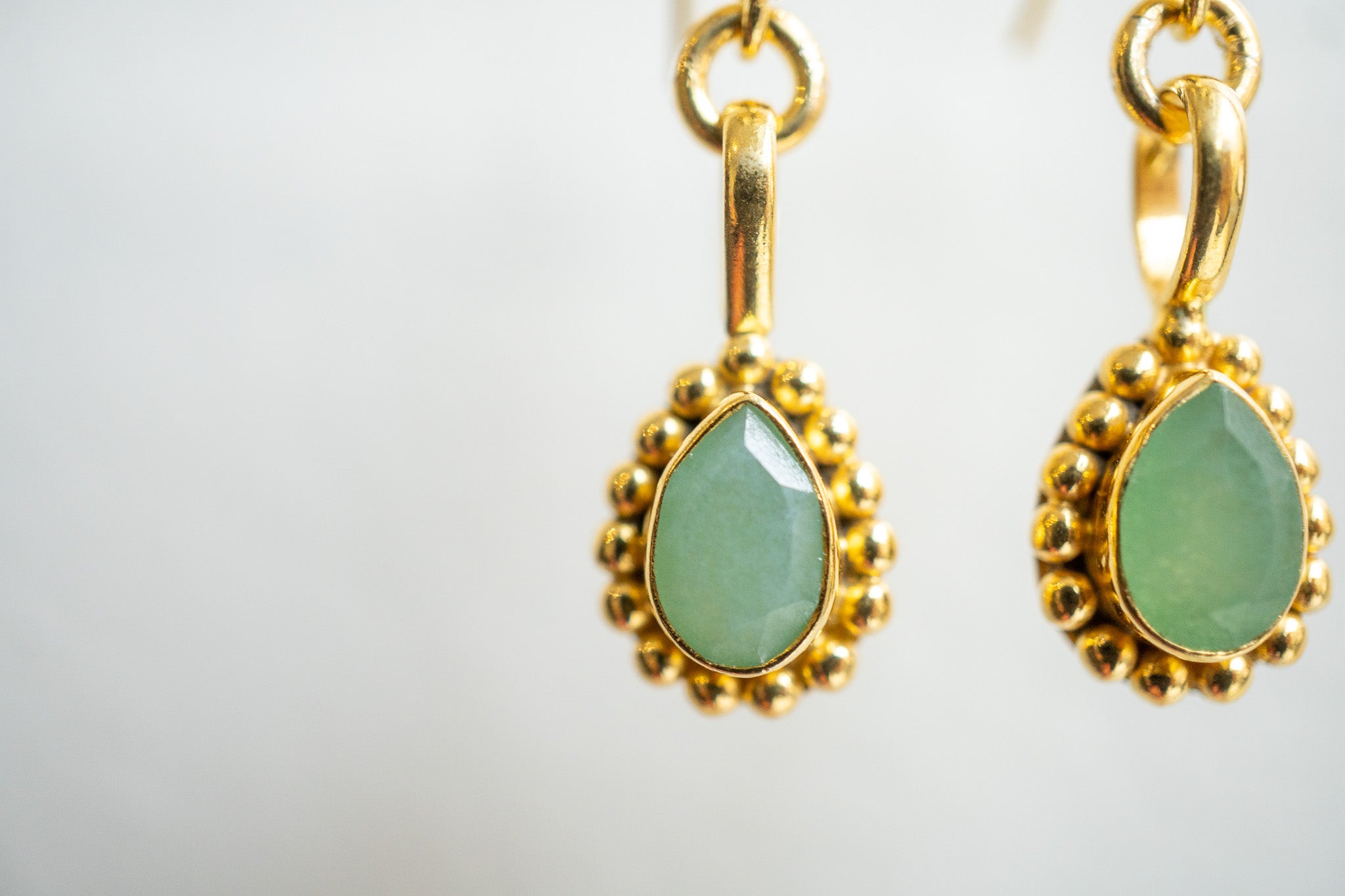 Boucles d'oreilles en chrysoprase et argent 925 plaqué or