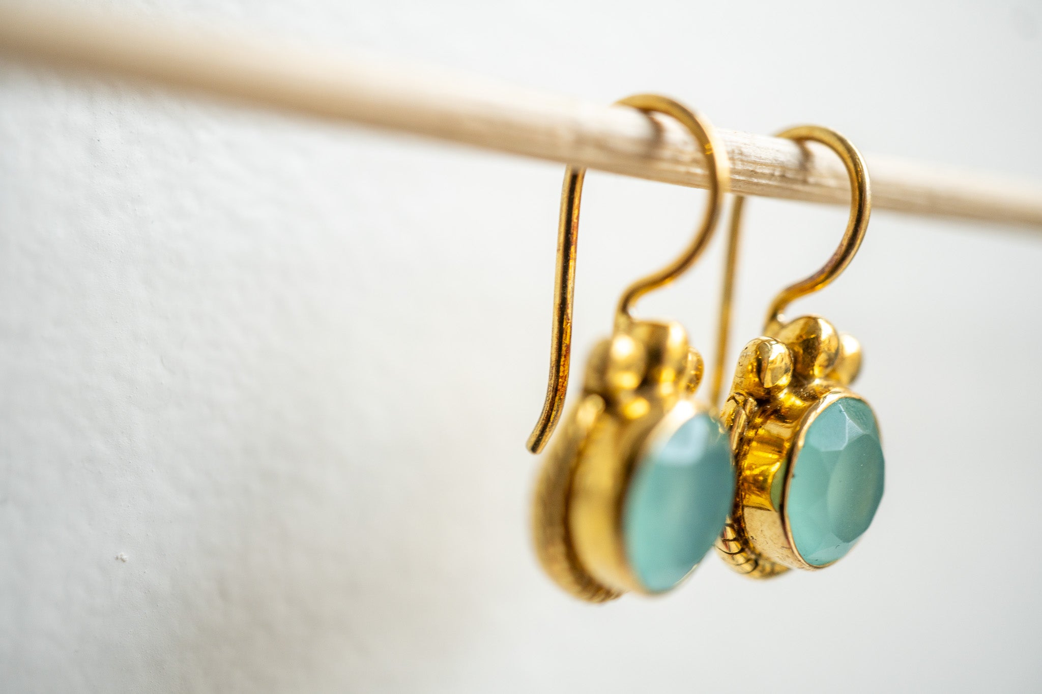Boucles d'oreilles puces agate et argent 925 plaqué or