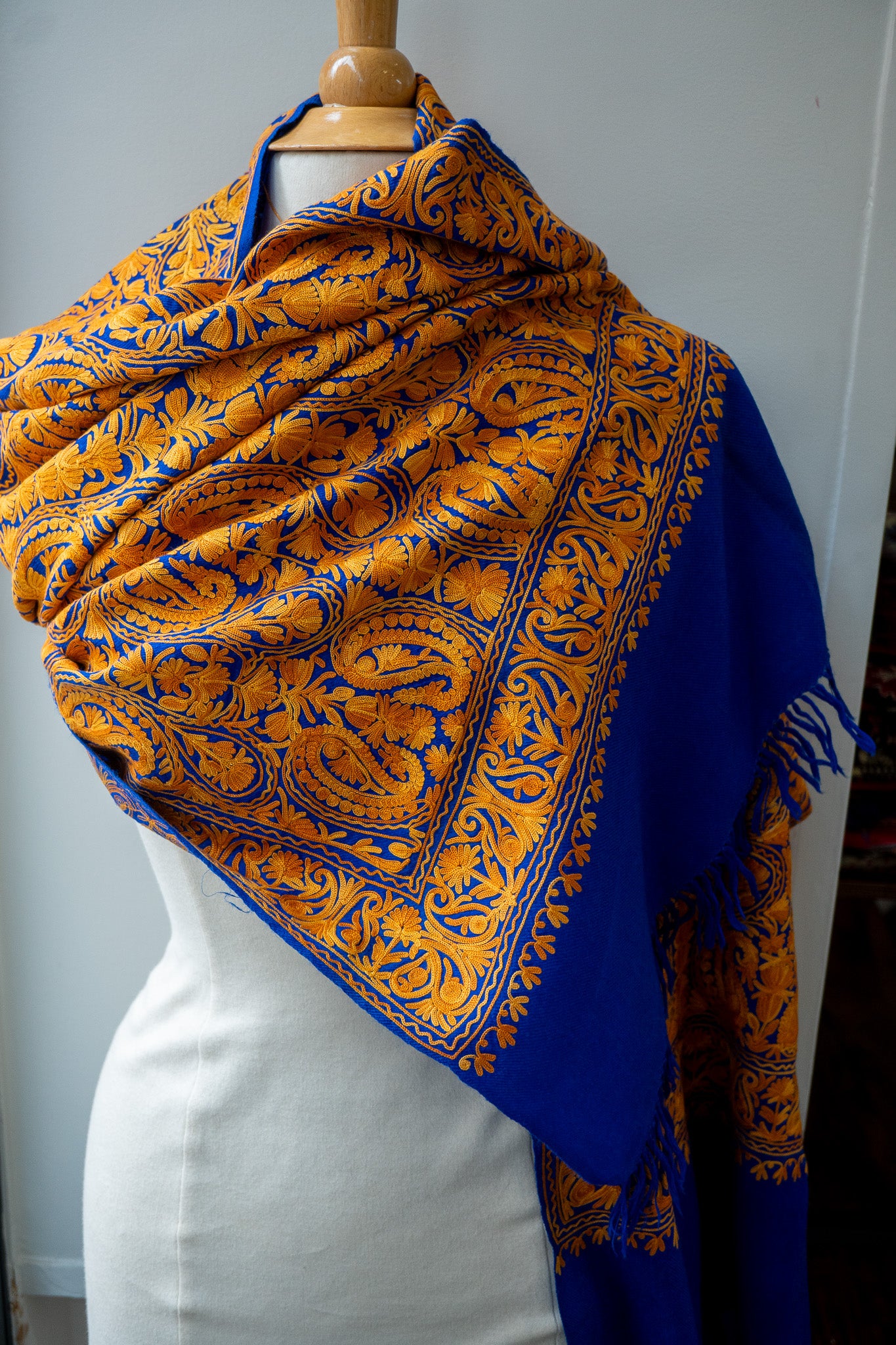 Dieser Wollschal vereint natürliche Wärme und Leichtigkeit. Die Ari-Stickerei – eine handwerkliche Technik mit einer feinen Häkelnadel, bekannt für ihre zarten und leicht strukturierten Muster – verleiht ihm einen authentischen und femininen Charme. Seine großzügigen Maße von 110 × 200 cm ermöglichen ein elegantes Drapieren über den Schultern, getragen als Stola für festliche Anlässe oder als Schal für einen schicken Alltagslook. Perfekt für kühle Herbst- und Wintertage, passt er sowohl zu einem Mantel als auch zu einem Kleid oder einem schlichten Outfit, das er aufwertet. Ein komfortables, raffiniertes und vielseitiges Accessoire, das jeden Moment – vom Büro bis zum eleganten Ausgehen – bereichert.