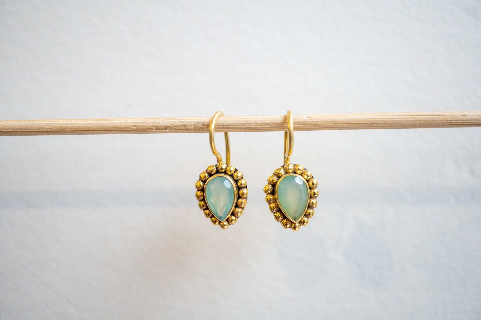 Elegant earrings crafted from natural agate, set in a meticulously gold-plated 925 sterling silver setting. Each stone, unique in its organic hues, adds a touch of authenticity and warmth. Lightweight and comfortable for everyday wear, these hoop earrings also perfectly complement a dressy outfit.