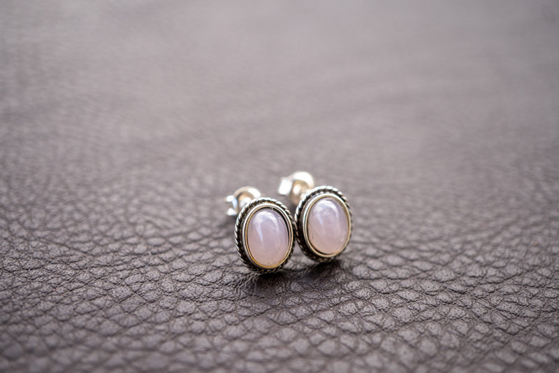 Oval Rose Quartz Stud Earrings – Soft Minimalism
