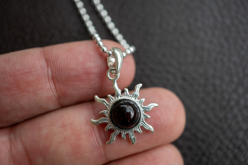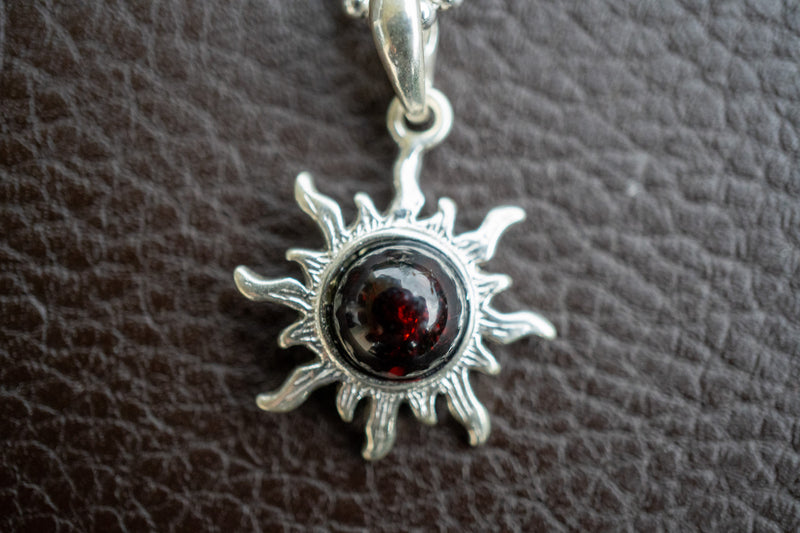 This sun-shaped pendant, made of cherry amber from the Baltic Sea, brightens up your look with its warm, golden hues. A symbol of light and energy, the sun represents vitality, warmth and optimism. It brings a natural and elegant touch to your outfits, a unique piece of jewelry that combines sophistication and timeless charm.