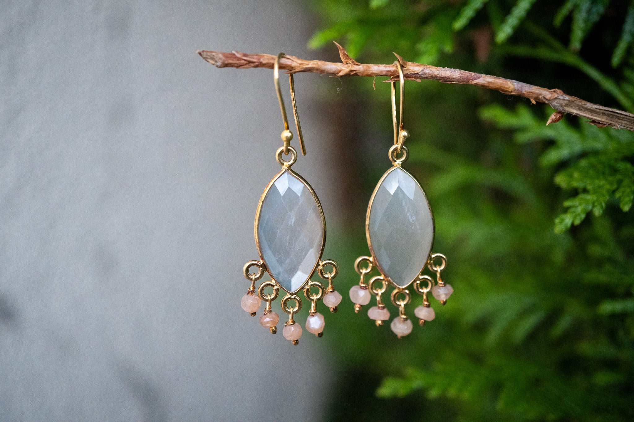 Boucles d'oreilles avec pierres de lune brunes et grises